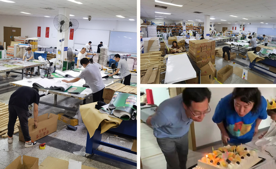 公司承攬的蒙牛門型展架40000套要求7月2日全面交付,后期手工壓力巨大,為了搶工期和進度,確保產(chǎn)品按時交貨,公司在內(nèi)部溝通群發(fā)布動員令。要求三樓職能部室人員6月27、28日協(xié)助生產(chǎn),領(lǐng)導(dǎo)帶頭是最好的示范,無論是工廠的蔣廠長,市場部的徐總,還是公司的總經(jīng)理唐總都在手工現(xiàn)場率先垂范,全身心投入工作,生產(chǎn)現(xiàn)場忙碌有序,打眼、卷畫、裝箱、打包,職能部室的員工與生產(chǎn)一線的員工相互配合,有條不紊的工作。截止28日共完成8200套,極大的緩解了交期壓力。