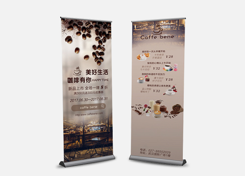 易拉寶的構造是一個座地的卷軸,由地面向上是一支伸縮柱,柱頂有一個扣,使用時由卷軸拉出一幅直立式的海報,吸引路人的注意。易拉寶適用于會議、展覽、銷售宣傳等場合,是使用頻率最高,也最常見的便攜展具之一。